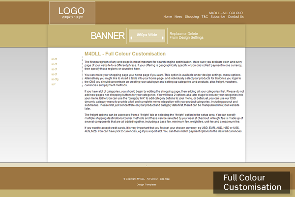 Please choose from another category located above the template chooser - we recommend positional templates. The positional templates allow you to upload your own banners, logos, change background colours and more. Advanced web designers can update their CSS stylesheets and HTML templates. If you want a website design transferred from an existing website or a 3rd party template, then please contact us for a quote to transfer your design, or follow the instructions in our advanced FAQ area.