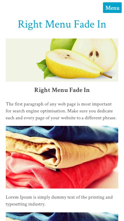 The minimal template is one of our most popular, and it has a responsive look that many like. We have also added the same look to our dedicated mobile themes. It has a menu that fades in from the right when you press the MENU button.