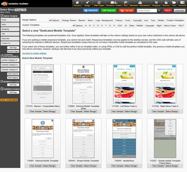 • Mobile template mode is connected to your live domain, and if enabled, and when it matches a known list of mobile phone types, it will automatically redirect them to the mobile mode on the same base domain.